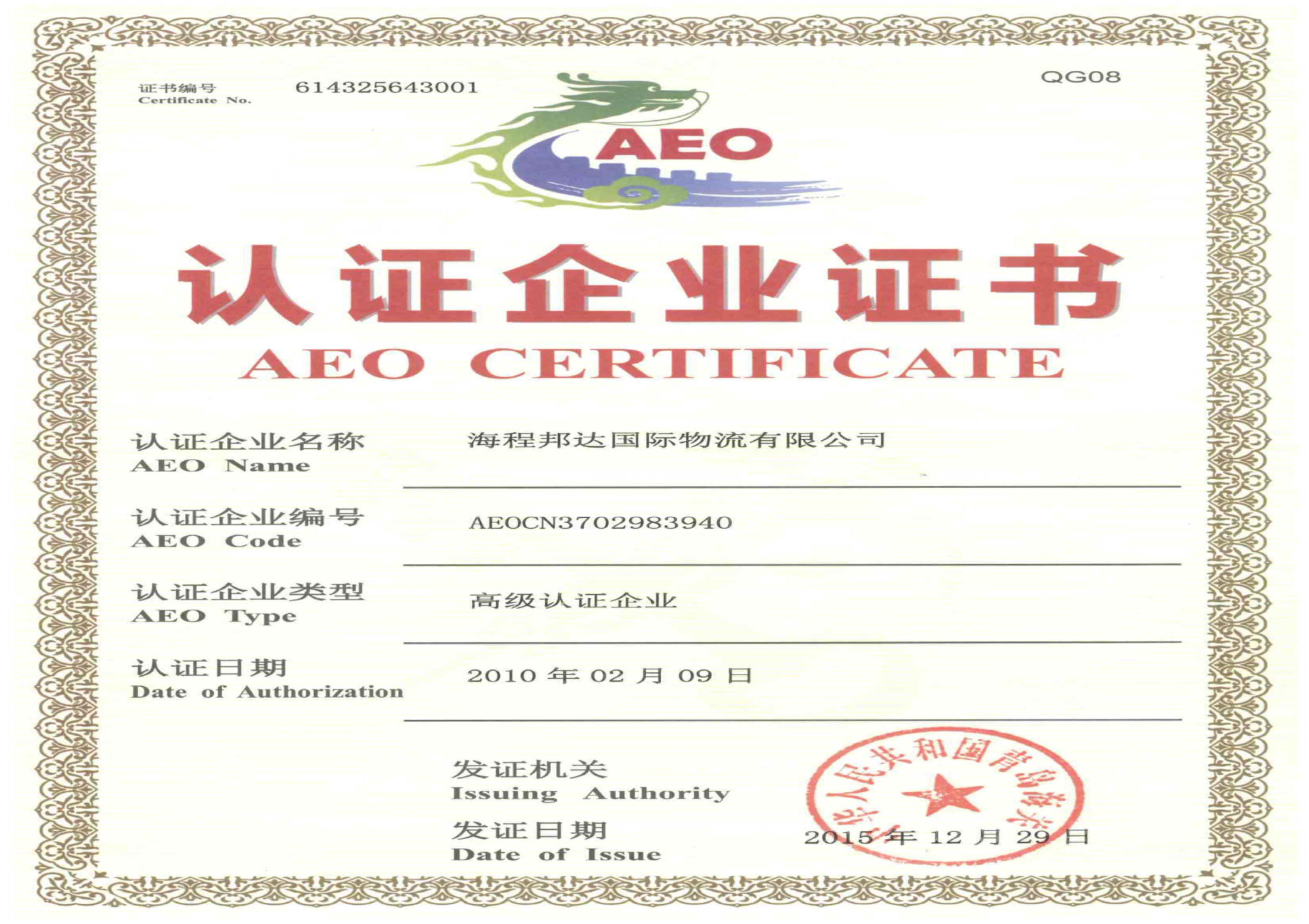 In December 2015, Bondex (Customs Registration No. 3702983940) passed the examination of "Advanced Certification Enterprise" of Qingdao Customs and formally obtained the Certificate of Advanced Certification Enterprise.