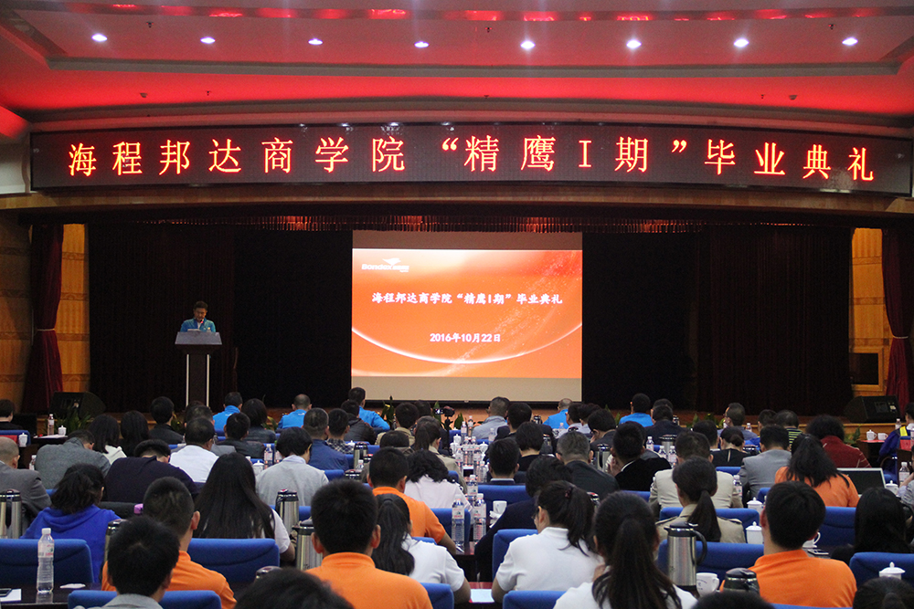 2016年10月22日下午,海程邦達商學(xué)院 “精鷹I期”畢業(yè)典禮如期舉行。集團總裁辦領(lǐng)導(dǎo)、部門分公司總經(jīng)理、海程邦達商學(xué)院導(dǎo)師和教務(wù)人員、“精鷹I期”畢業(yè)生、“飛鷹I期”學(xué)員共同出席了畢業(yè)典禮。“精鷹I期”學(xué)員在領(lǐng)導(dǎo)、老師和同學(xué)的共同見證下,順利畢業(yè)。